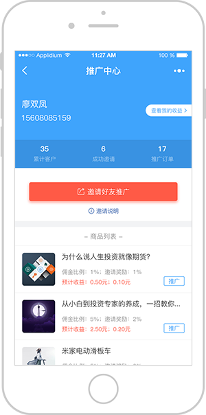招募推广员推广产品,支持推广员二级分销,自由设置佣金结算比例和邀请奖励比例